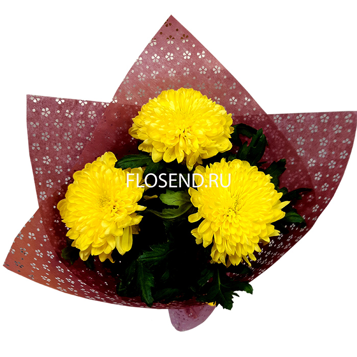 Букет «3 желтых хризантем» в Анжеро-Судженске