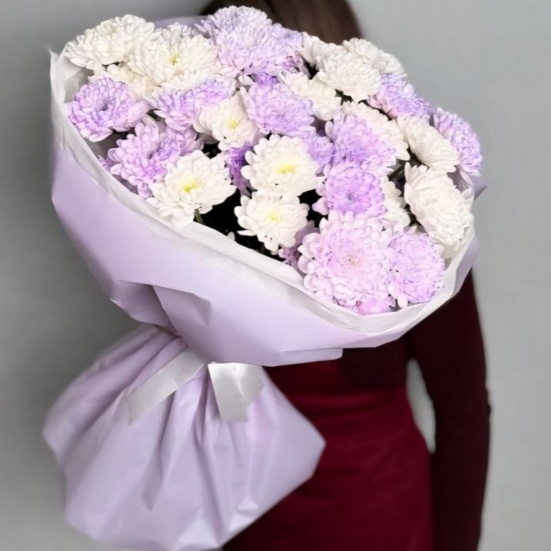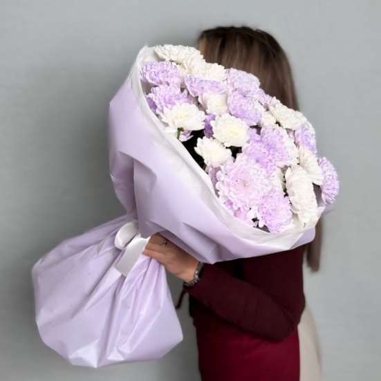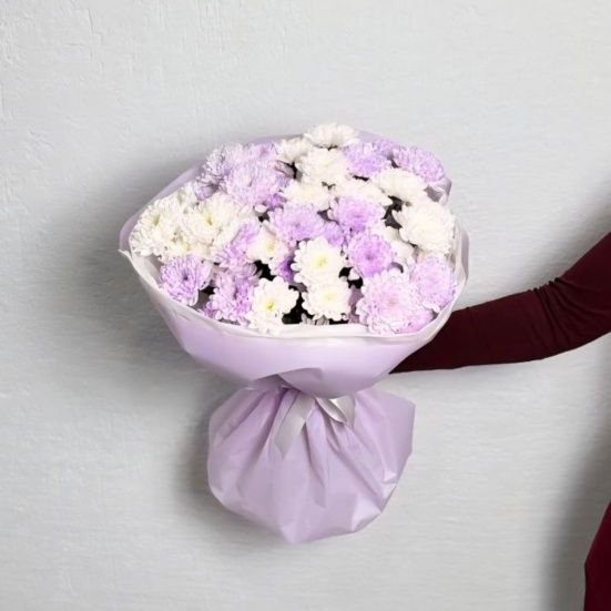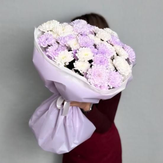 Букет из 9 фиолетовых и белых хризантем