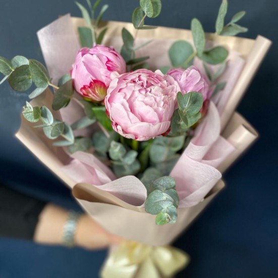 Букет «Пионы с эвкалиптом» в Анжеро-Судженске