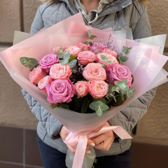Букет «Пионовидных роз с эвкалиптом» в Анжеро-Судженске