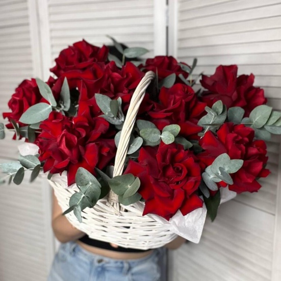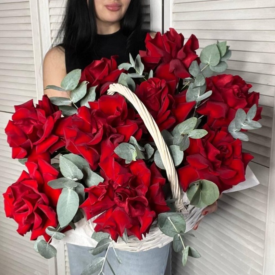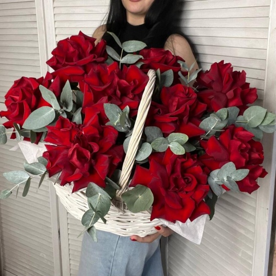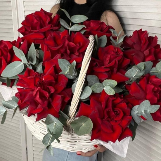 Корзина из 9 красных французских роз в Анжеро-Судженске