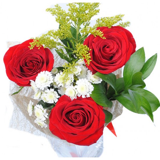 Букет «3 красных роз и 2 белых хризантем» в Анжеро-Судженске